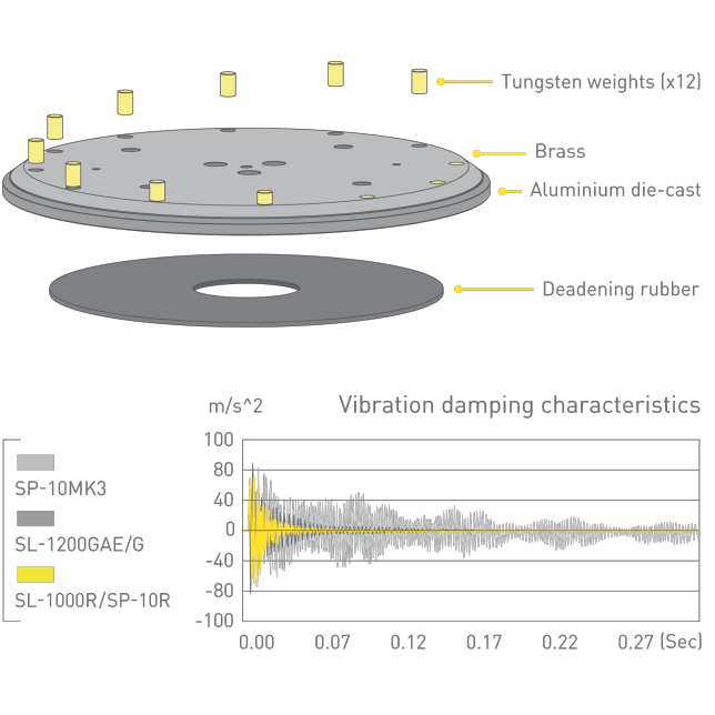 The tonearm base, to which the tonearm is mounted, is strongly integrated with the turntable part. Comparing the turntable base part with the tonearm mounting construction, the relationship of the tonearm bearings, turntable bearings, and needle position is always constant, providing a structure in which the vibration caused by the rigidity of the turntable base materials has minimal effect, and the tonearm performance is maximized. An optional tonearm base can also be purchased, enabling, in addition to the standard tonearm, an existing short or long-type tonearm from SME or Ortofon to be mounted (up to three including the standard tonearm).