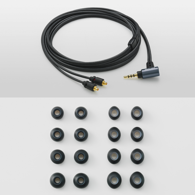 L’EAH-TZ700 dispose de deux types de câbles : symétriques et asymétriques. L’utilisateur peut choisir celui qui convient à ses préférences ou à son environnement de connexion. Le connecteur MMCX à usage général, utilisé pour la connexion au boîtier principal, offre une polyvalence supplémentaire en matière de recâblage. Les écouteurs sont des éléments importants, qui affectent également la qualité du son. En plus de ceux de forme classique et ronde, sont fournis des embouts de forme ovale offrant une excellente isolation phonique. De plus, chaque type d’embout est disponible en quatre tailles différentes. Ceci permet à chaque utilisateur de profiter d’une expérience musicale de haute qualité dans un confort optimal.