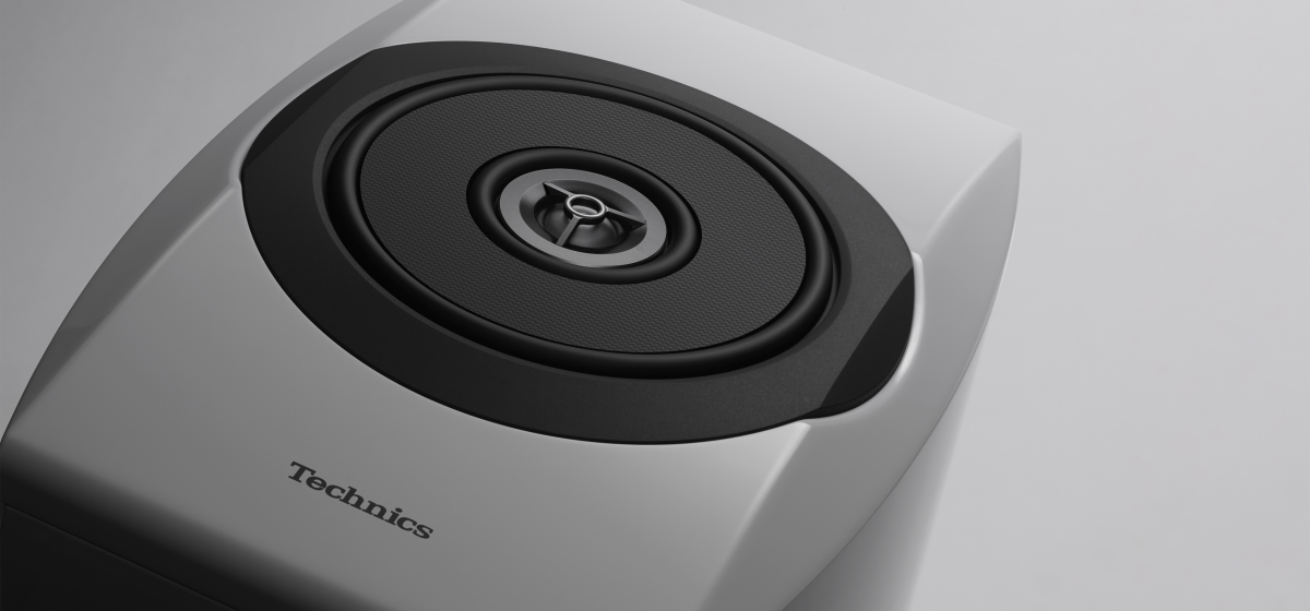 Le haut-parleur coaxial plat 2 voies est un développement propriétaire de Technics, conçu pour la reproduction fidèle des moyennes et hautes fréquences. Le diaphragme plat du woofer présente une membrane à structure sandwich, utilisant deux peaux de fibres de carbone à haute rigidité et une âme aluminium en nid d’abeille. Il maintient un parfait mouvement de piston sur une bande de fréquence supérieure au point de croisement avec le tweeter, assurant ainsi une intégration en douceur.