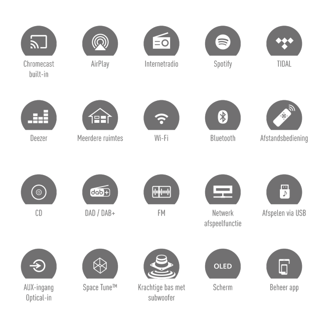 Google, Google Home en Google Cast™ zijn handelsmerken van Google LLC. Google Assistant is niet beschikbaar in bepaalde talen en landen.