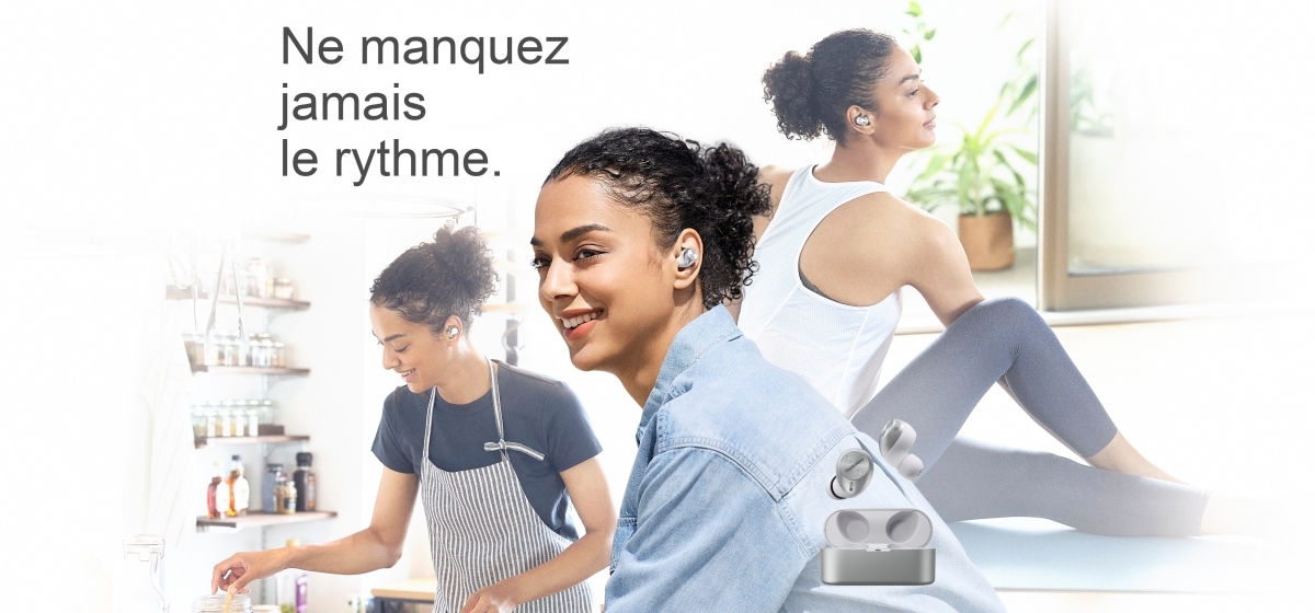 Des haut-parleurs compacts mais puissants de 6 mm et une structure acoustique spéciale avec réduction active de bruit offrent un son clair sans fil, où que vous mène votre journée bien remplie. Commutation transparente des dispositifs et clarté d’appel cristalline dans un format confortable – pour ne rien manquer.