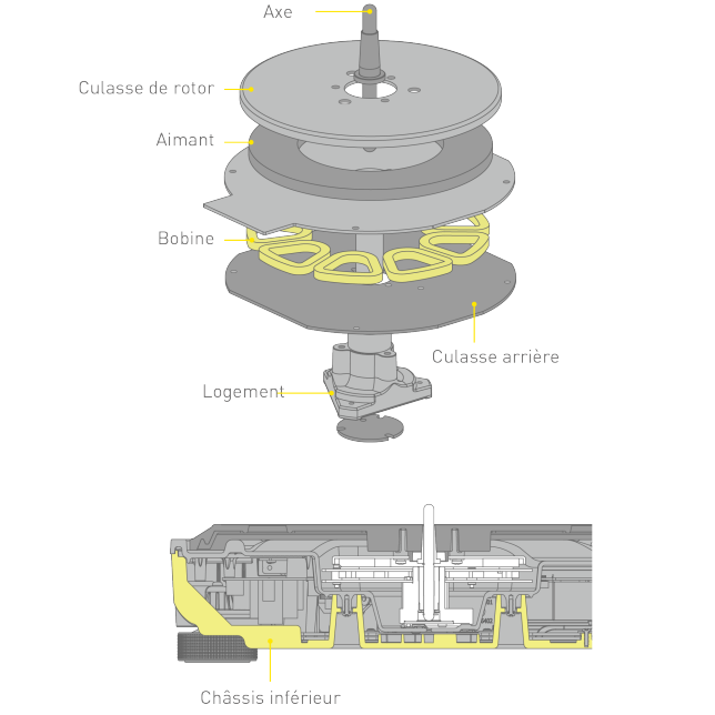 - Le tout dernier moteur à entraînement direct sans noyau offre une rotation stable de haute précision