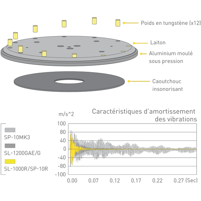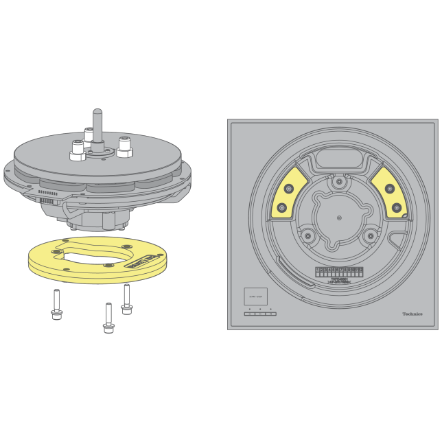 La base sur laquelle est monté le bras de lecture est solidement intégrée à la platine. Afin d’optimiser la performance exceptionnelle du bras de lecture, la relation entre les roulements de ce dernier, les roulements du plateau tournant et la position de l’aiguille est constante, créant une structure dans laquelle les vibrations dues à la rigidité des matériaux de la base du plateau ont un effet minime. De plus, il est possible d’acheter une base de bras de lecture en option en plus du bras de lecture standard, et d’un bras de lecture existant court ou long de SME ou Ortofon à monter (jusqu’à trois bras de lecture, modèle standard compris).