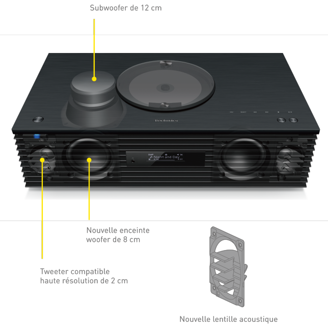 Système musical tout-en-un de première qualité à la conception élégante et intemporelle