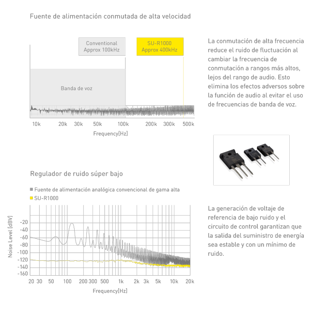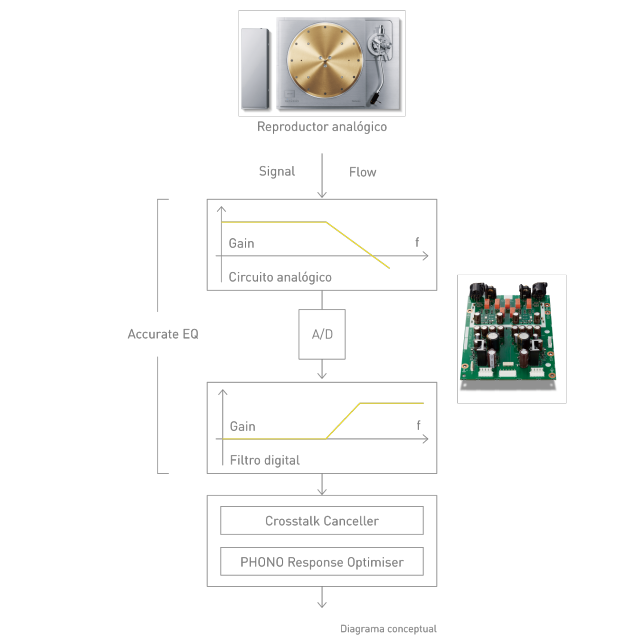 Curva de ecualización precisa posible gracias al diseño de circuito híbrido analógico/digital