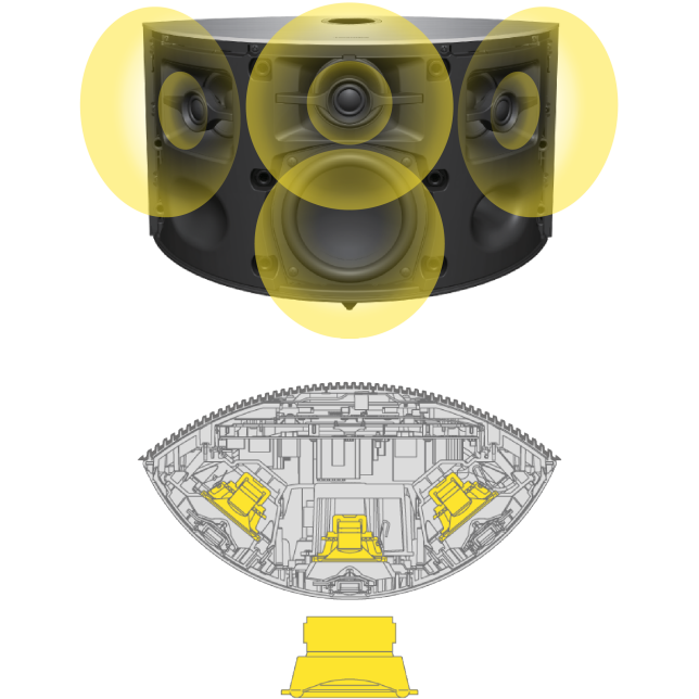 - Struktura uspořádání koaxiálního reproduktoru a nátrubku řízení směrovosti