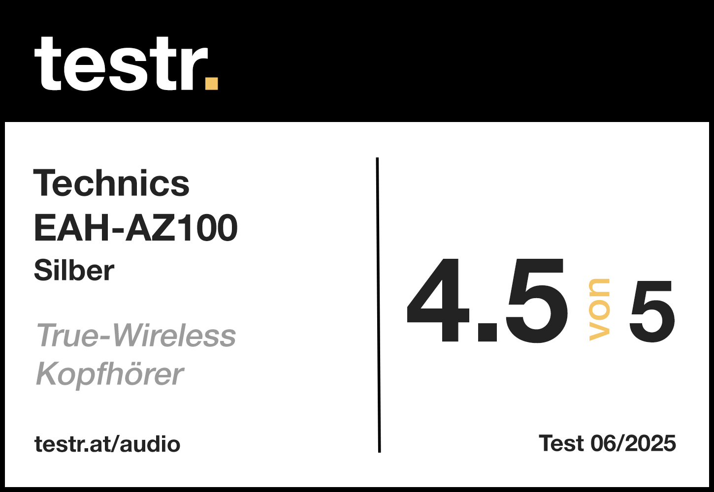 "Die Technics EAH-AZ100 treten in die Fußstapfen des AZ80 und zeigen sich als würdiger Nachfolger. Besonders die exzellente Klangqualität begeistert und macht die In-Ears zu einer echten Empfehlung für Musikliebhaberinnen und Musikliebhaber. Auch als Headset überzeugen sie mit klarer Sprachübertragung."