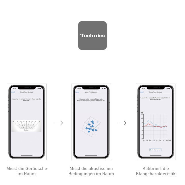 Diese Funktion verfügt über drei Voreinstellungen („Frei“, „Wand“ und „Nahe der Ecke“) und kann zudem zusammen mit der „Technics Audio Center App“ zur präzisen Anpassung der Klangqualität an die Hörposition genutzt werden.