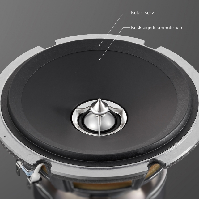 - Väikese moonutuse ja pika löögiga 16 cm bassikõlar