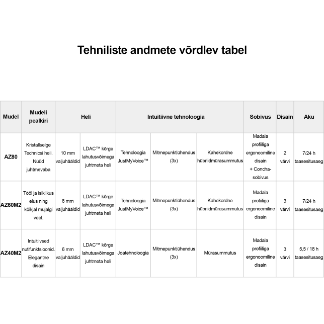 Tõeliselt juhtmevabad mürasummutavad kuularid mitmepunkti Bluetooth®-iga, AZ40M2