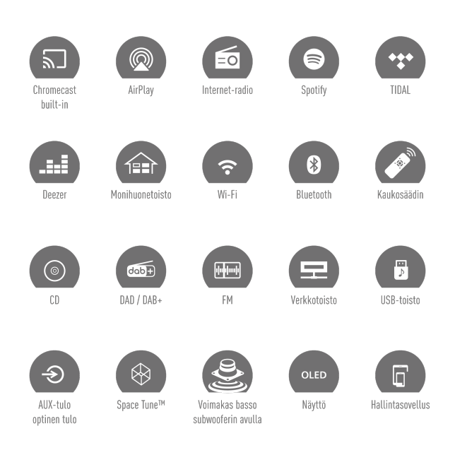 - Space Tune™ äänenlaadun optimaaliseen säätöön