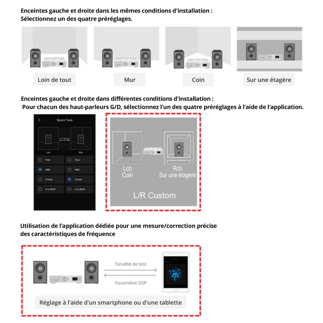 De plus, si la gestion du caisson de basse n’a pas changé (toujours pas de filtres), en revanche avec la fonction SpaceTune de l’appli sur iOS, la gestion de l’équilibre des graves se fait sans difficulté.