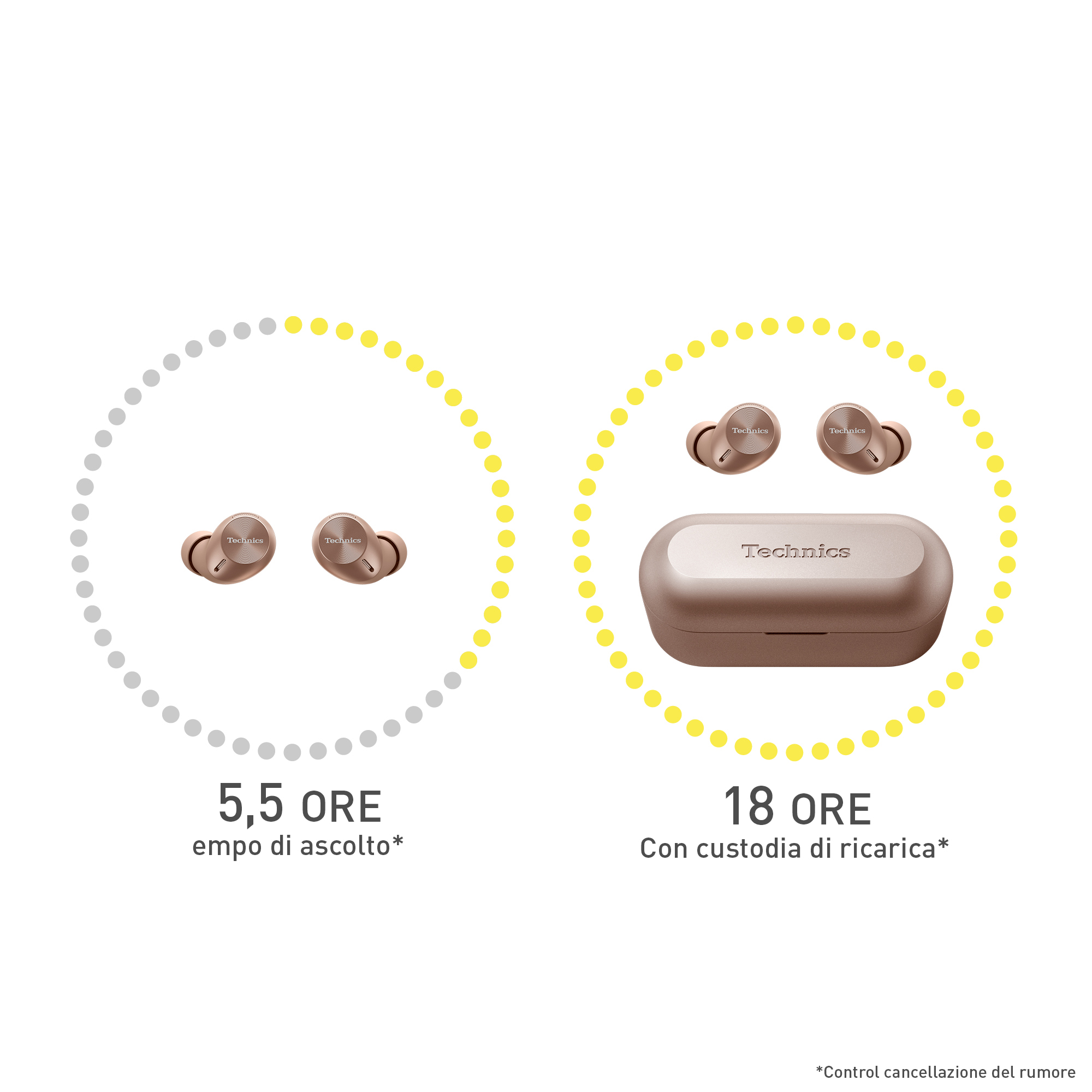 Per un ascolto di qualità superiore, hai bisogno di auricolari all'altezza. Gli auricolari True Wireless Technics, progettati all'insegna del comfort, garantiscono un suono superiore, ovunque tu sia e qualunque cosa tu stia facendo. Usa le funzionalità intelligenti per passare senza problemi dall'ascolto di musica a una chiamata.