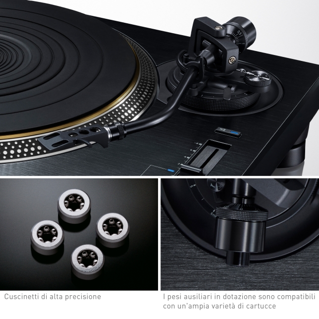 I tradizionali giradischi analogici sono caratterizzati da una degradazione della qualità del suono, dovuta a fattori come le vibrazioni associate alla velocità di rotazione e all'irregolarità della rotazione stessa, o “cogging”. Nel giradischi SL-1210G, il cogging viene eliminato grazie a un motore Coreless a trazione diretta di nuova concezione, privo di anima in ferro. Inoltre, la struttura a doppio rotore riduce il carico sui cuscinetti, consentendo al tempo stesso di mantenere una coppia elevata, e riduce le piccole vibrazioni durante la rotazione. Tutti questi fattori consentono di riprodurre il suono caldo e deliziosamente ricco di sfumature che caratterizza le registrazioni analogiche.