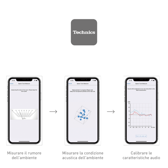 Questa funzione include 3 preimpostazioni (Libera, vicina alla parete e ad angolo) per facilitare la configurazione e utilizza un'app Technics Audio Center per regolare con precisione la qualità dell'audio in base alla posizione di ascolto.