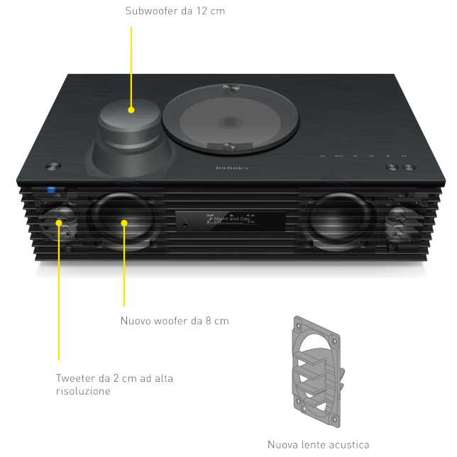 Esperienza di ascolto ricca grazie alle nuove unità di altoparlanti e alla lente acustica