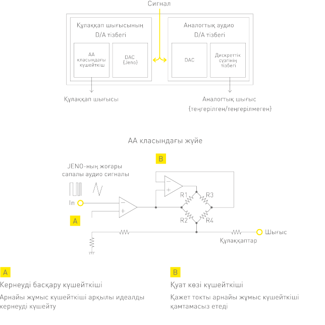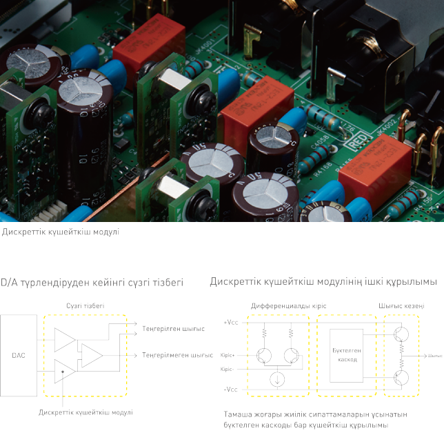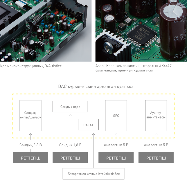 - Жоғары сапалы D/A түрлендіргіші және қос моно құрылымының D/A тізбегі