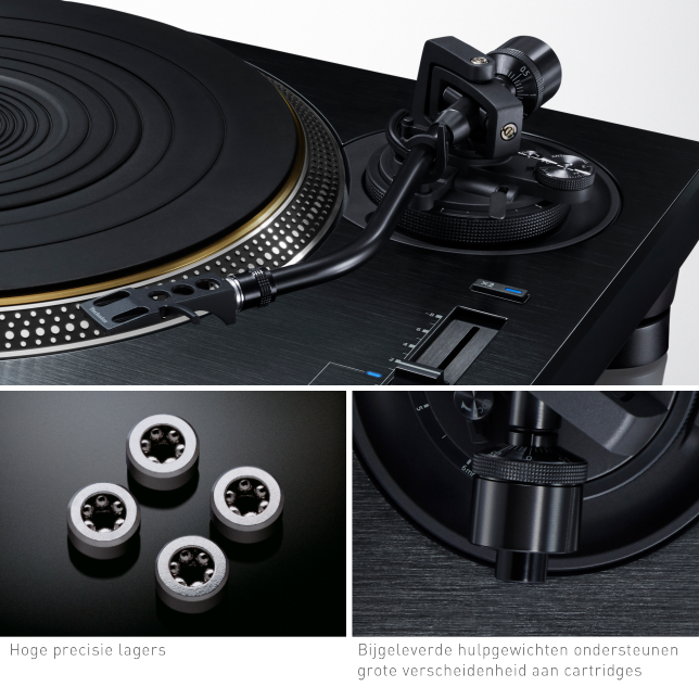 Net als bij de SL1200GAE is een vierde laag toegevoegd: een plaat eersteklas aluminium van 10 mm dik. Deze constructie uit vier lagen staat voor hoge rigiditeit en absorptie van trillingen, en dat alles is voorzien van een zeer hoogwaardige afwerking en uitstraling.