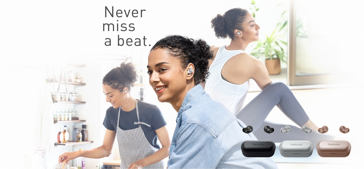 Keep one ear open, or charge one earbud while using the other. Customise touch sensors through the Technics app.
