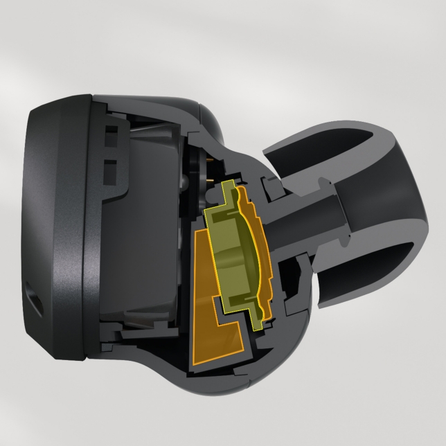 Dual-hybrid Noise Cancelling with Feedforward & Feedback Mics, plus Analogue & Digital Processing – a hi-fi experience.