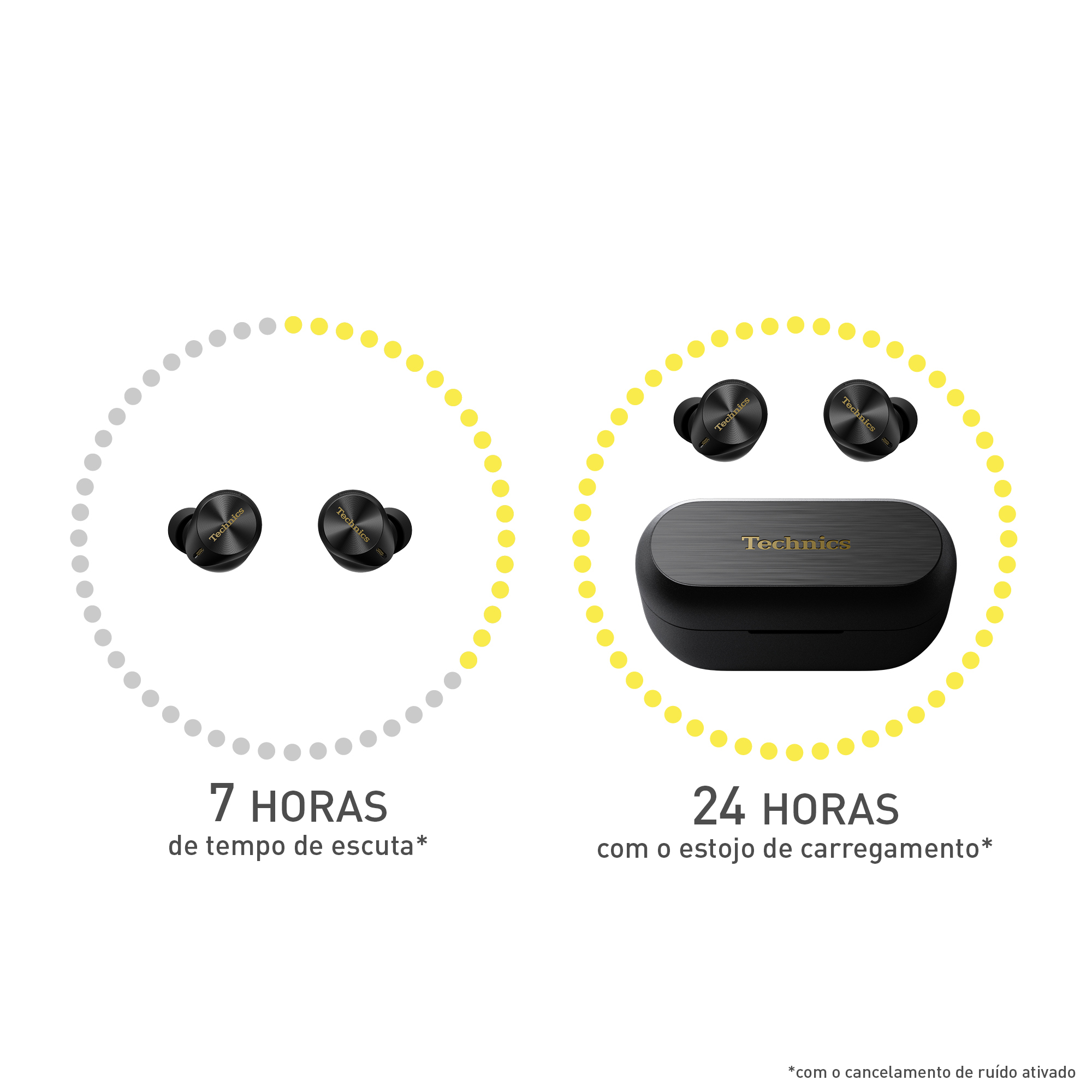 Os drivers de 10 mm, a estrutura acústica especial e a melhor tecnologia de cancelamento de ruído desta categoria de produtos dos auriculares AZ80 proporcionam o som excecional característico da Technics – em qualquer lugar. Com um design deslumbrante e confortável, comutação fácil entre dispositivos e uma qualidade de som nítida e cristalina – para não perder nada.