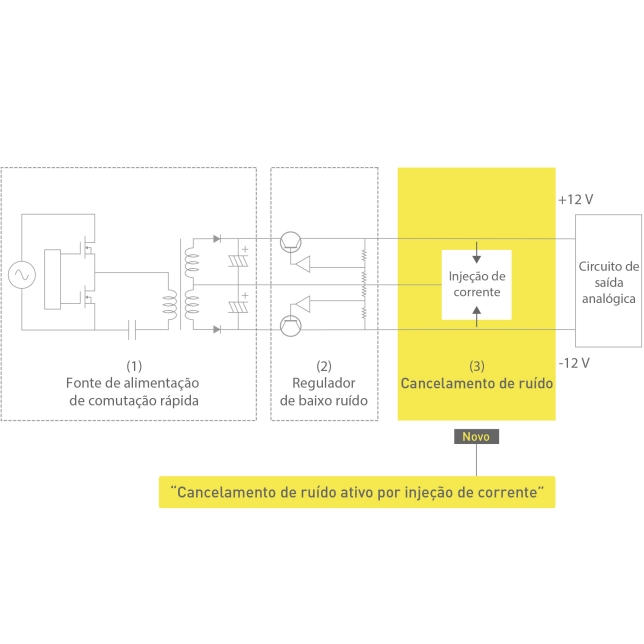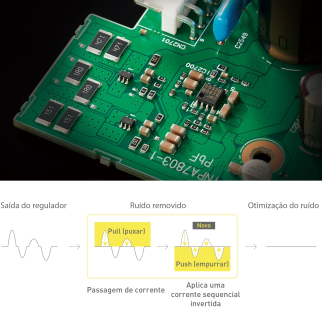 - Fonte de alimentação multifásica silenciosa para uma qualidade de som impecável