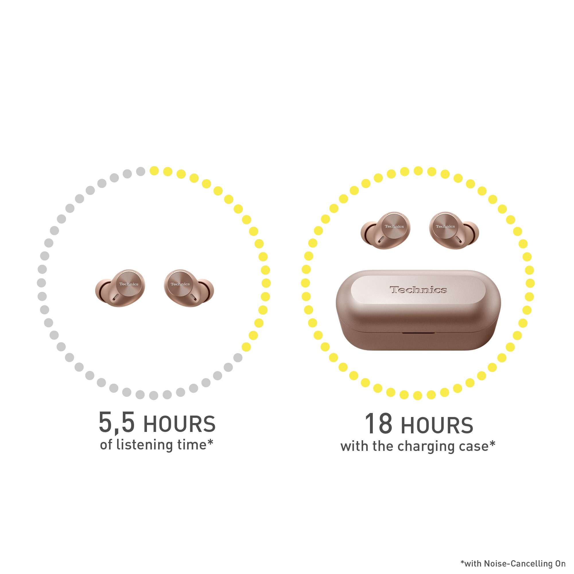 För att kunna lyssna på musik med hög ljudkvalitet behöver du hörlurar som klarar ditt tempo. Technics true wireless hörlurar är konstruerade för högsta komfort och ger dig överlägset ljud var du än är och vad du än gör. Använd smarta funktioner för sömlös övergång från att lyssna på musik till att ta ett samtal.