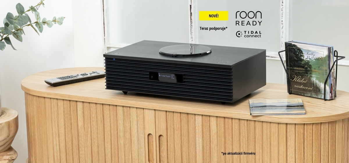 Hudobný systém typu všetko v jednom špičkovej triedy s elegantným nadčasovým dizajnom