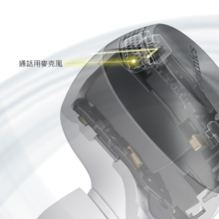 通話用麥克風會主動捕捉您的聲音,透過波束成形降低周圍噪音,即使嘈雜的環境中也能進行清晰的通話。此外,降低風噪聲的結構可以抑制空氣振動。